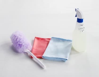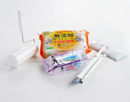 掃除機、ドライフロアシート、ウェットフロアシート、コロコロで清掃します。